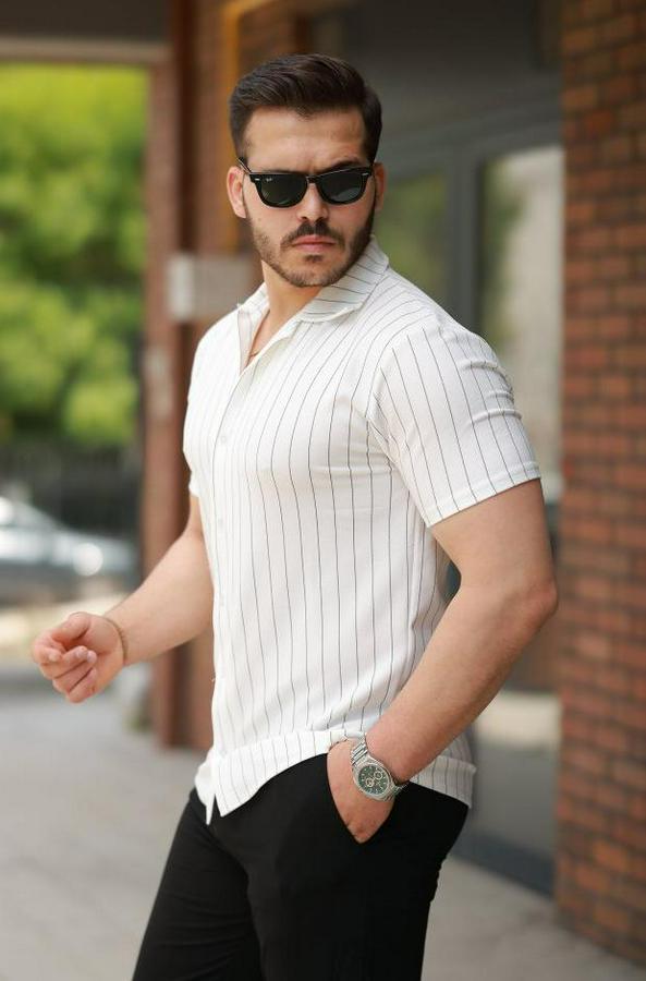 Erkek Kısa Kollu çizgili Gömlek