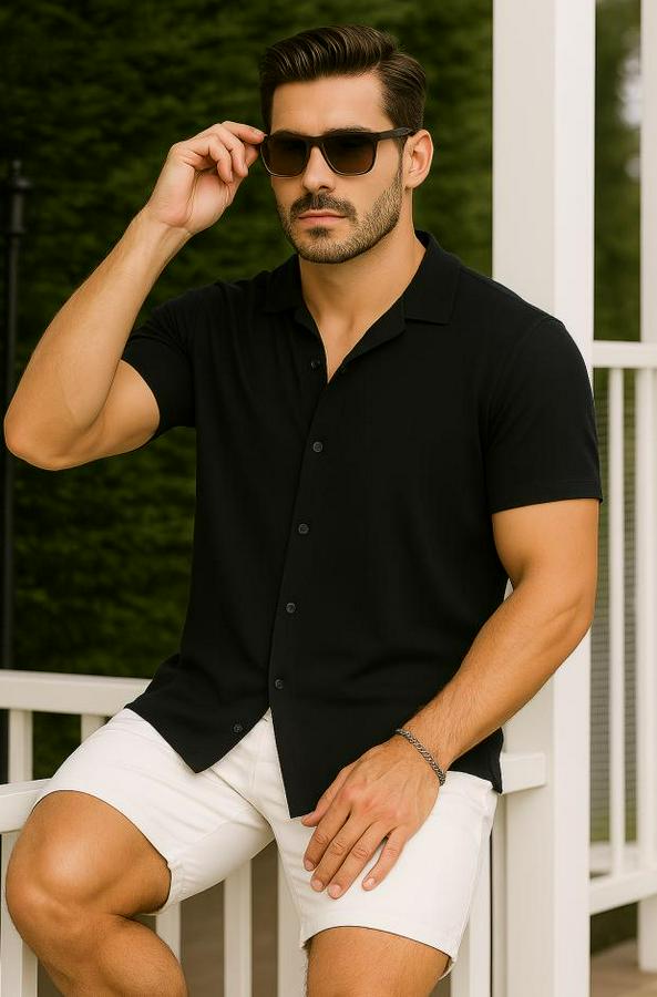 Kısa Kollu Örme Kumaş Pamuklu Gömlek