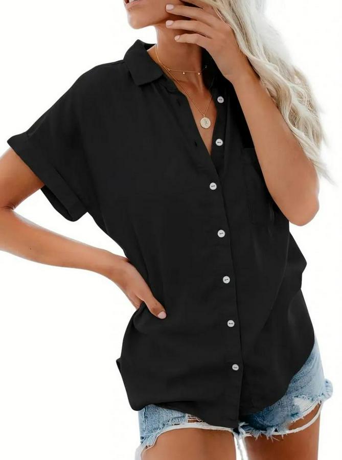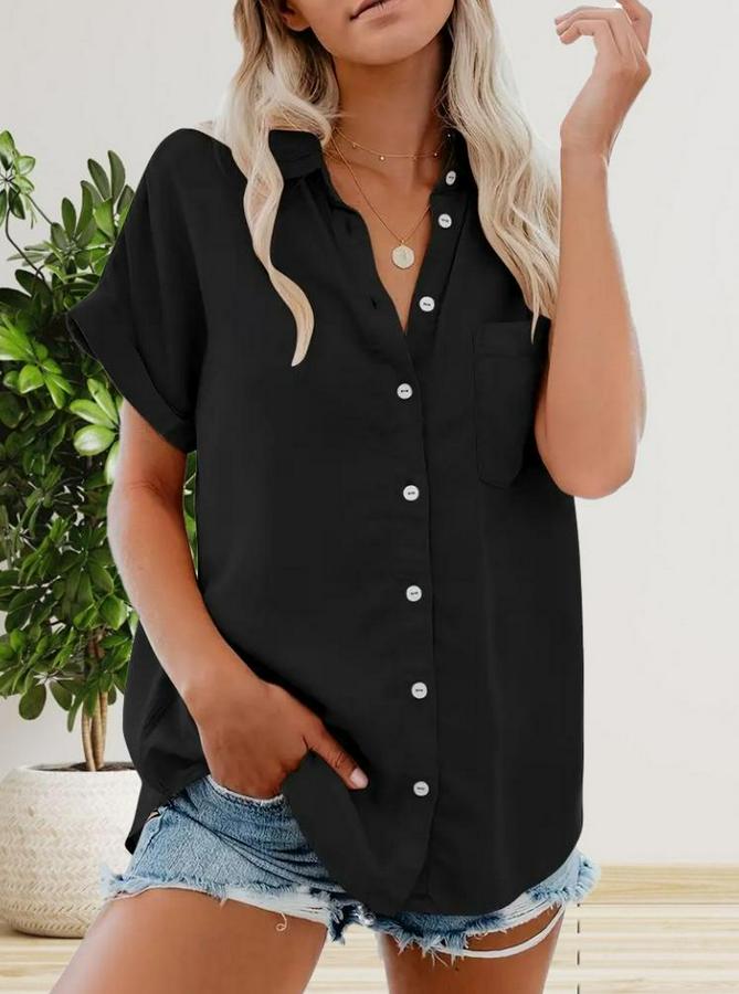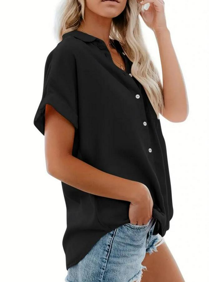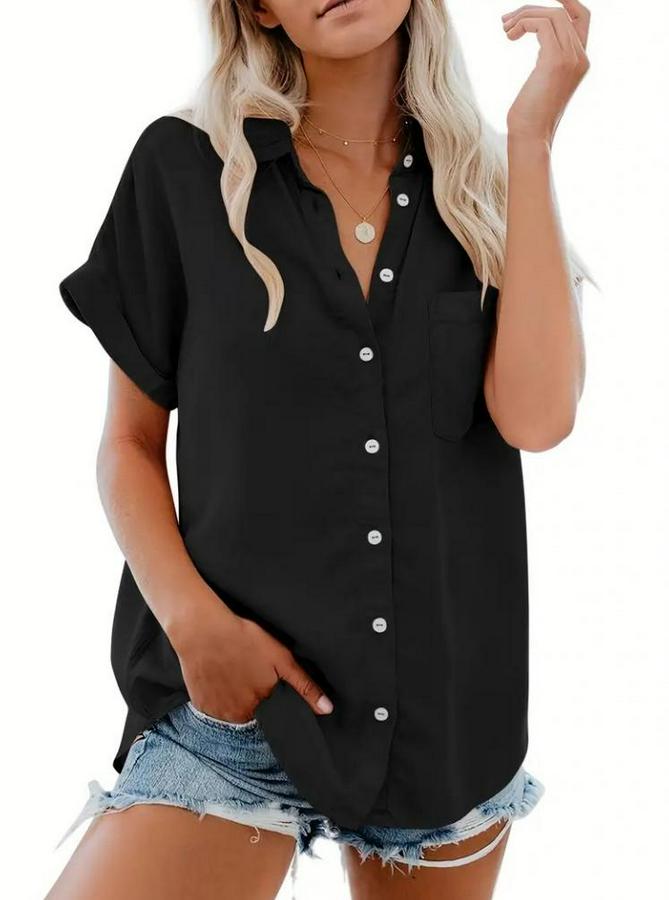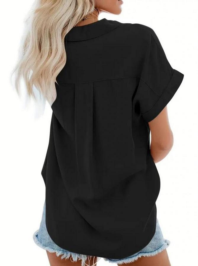 AnasayfaTüm ÜrünlerÜst GiyimGömlekKısa Kollu V Yakalı Önden Düğmeli Dokuma Gömlek