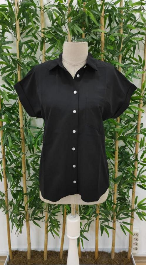 Kısa Kollu V Yakalı Önden Düğmeli Dokuma Gömlek