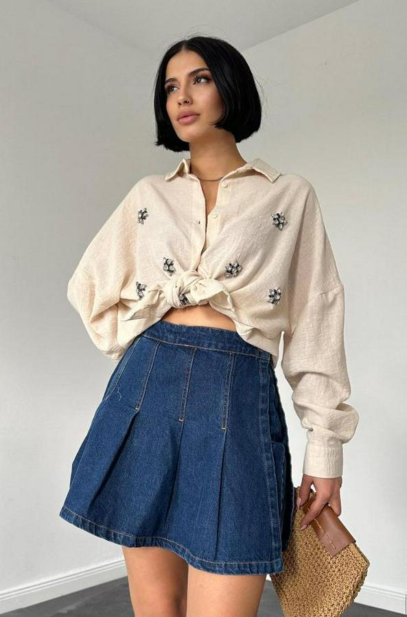 Krem Taş İşlemeli Gömlek