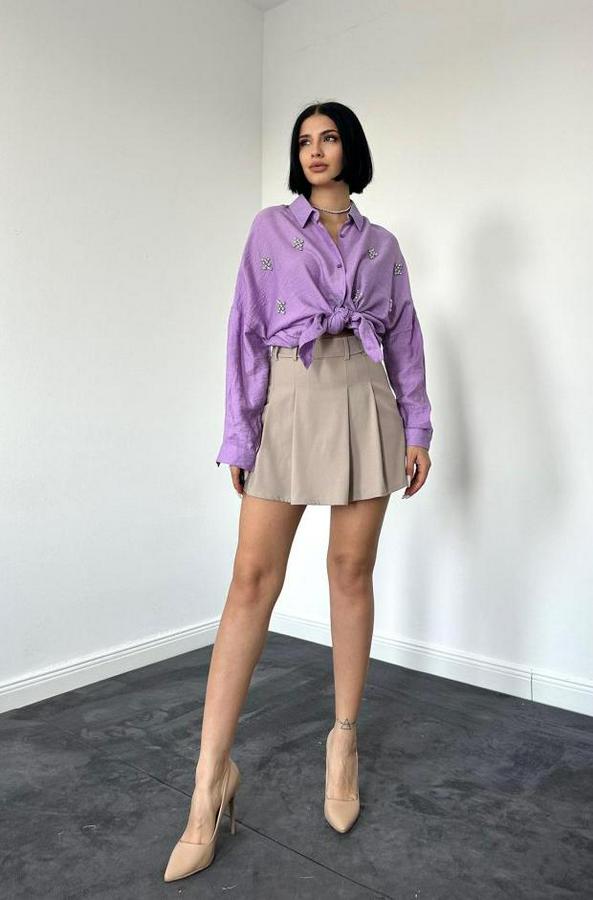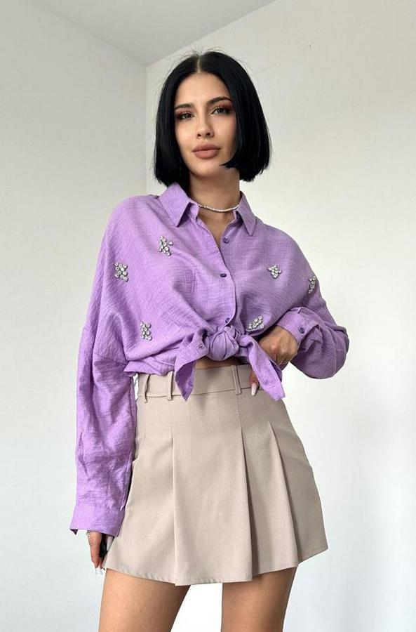 AnasayfaTüm ÜrünlerÜst GiyimGömlekLila Kristal Taşlı Gömlek