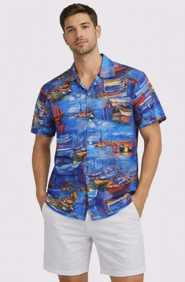 AnasayfaTüm ÜrünlerÜst GiyimGömlekMarin Desenli Kısa Kol Gömlek Yazlık Rahat Kalıp Dijital Baskılı