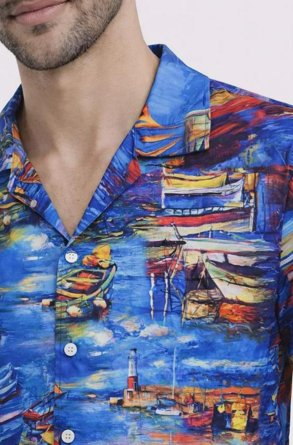Marin Desenli Kısa Kol Gömlek Yazlık Rahat Kalıp Dijital Baskılı