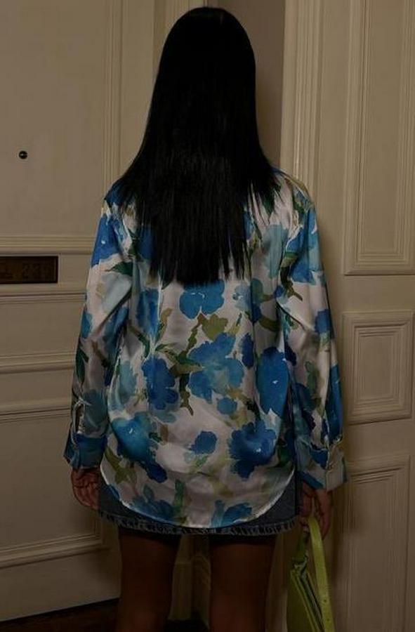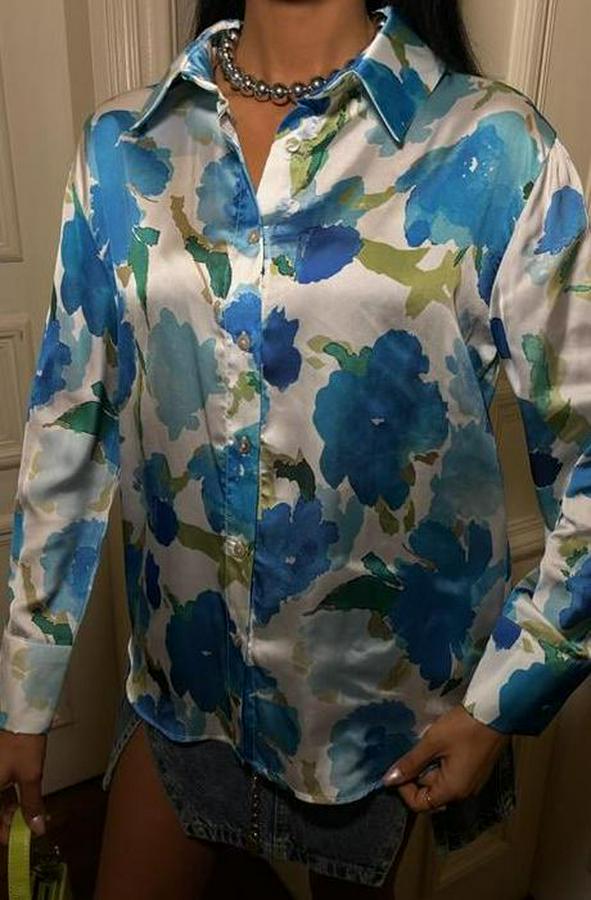 AnasayfaTüm ÜrünlerÜst GiyimGömlekMavi Çiçekli Saten Gömlek 3417