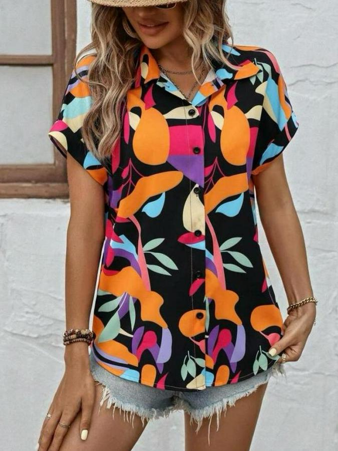 AnasayfaTüm ÜrünlerÜst GiyimGömlekMoss Krep Kumaş Kısa Kol Çiçek Desenli Gömlek