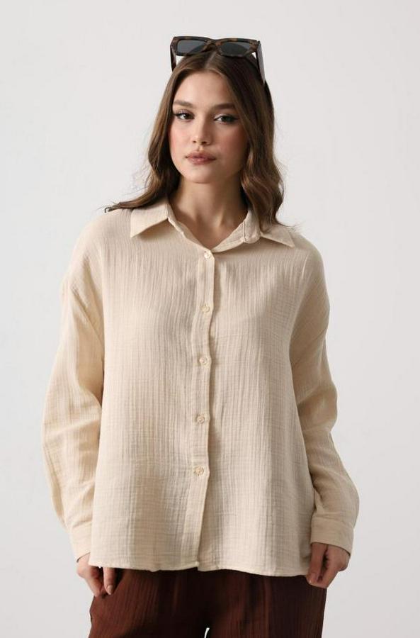 AnasayfaTüm ÜrünlerÜst GiyimGömlekMüslin Uzun Kol Gömlek