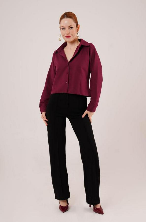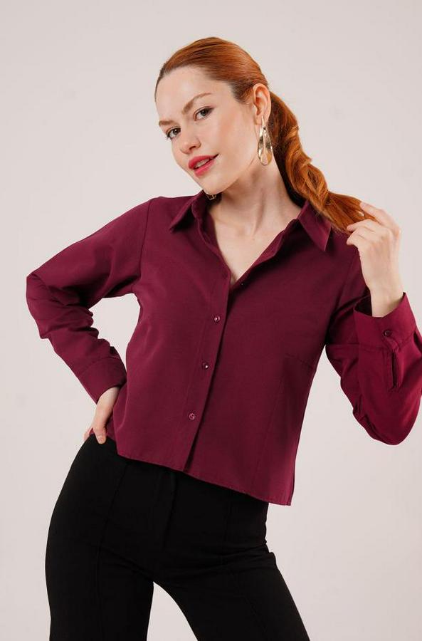 AnasayfaTüm ÜrünlerÜst GiyimGömlekÖn Dikiş Detaylı Bordo Gömlek