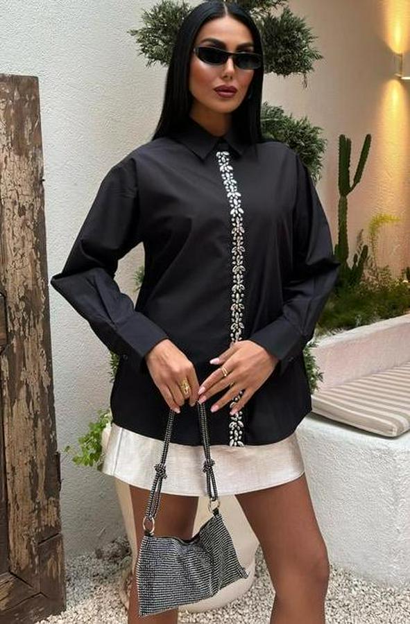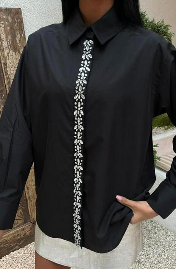 AnasayfaTüm ÜrünlerÜst GiyimGömlekÖnü Şerit Taşlı Gömlek 3448