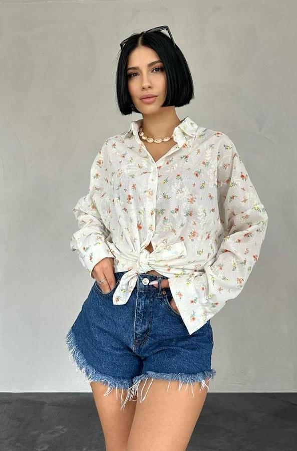 AnasayfaTüm ÜrünlerÜst GiyimGömlekOranj Brode Çiçek Nakışlı Klasik Gömlek