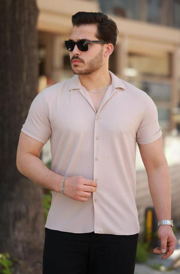 Ottoman Kumaş Apaj Yaka Kısa Kollu Gömlek