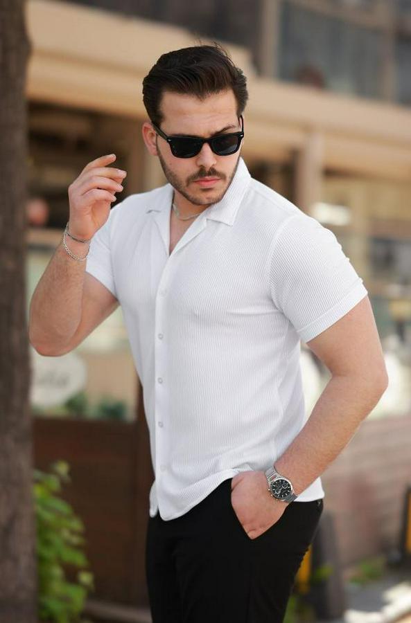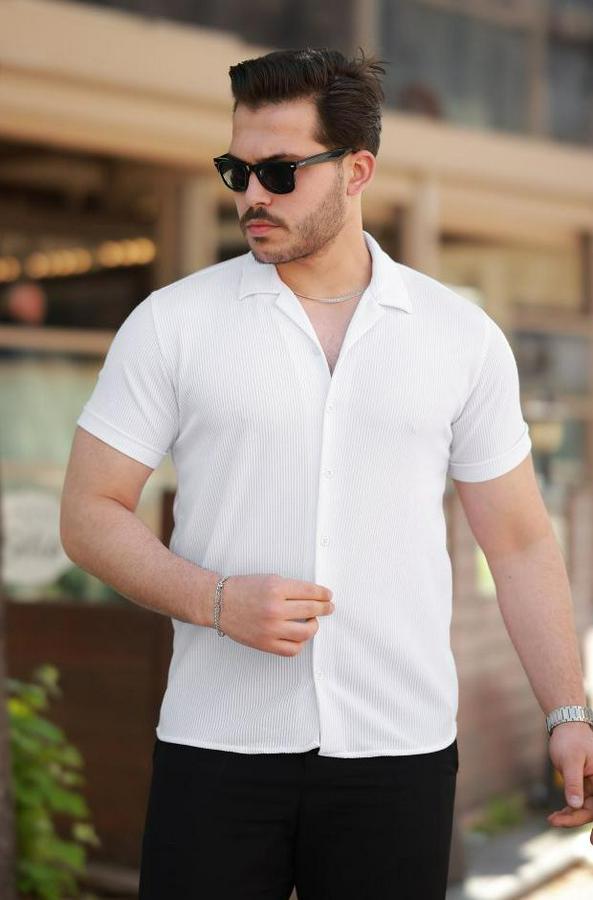 Erkek Ottoman Kumaş Apaj Yaka Kısa Kollu Gömlek