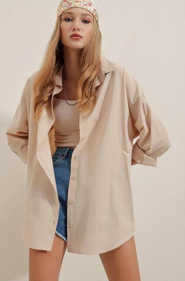 AnasayfaTüm ÜrünlerÜst GiyimGömlekOversize Uzun Basic Gömlek