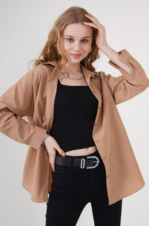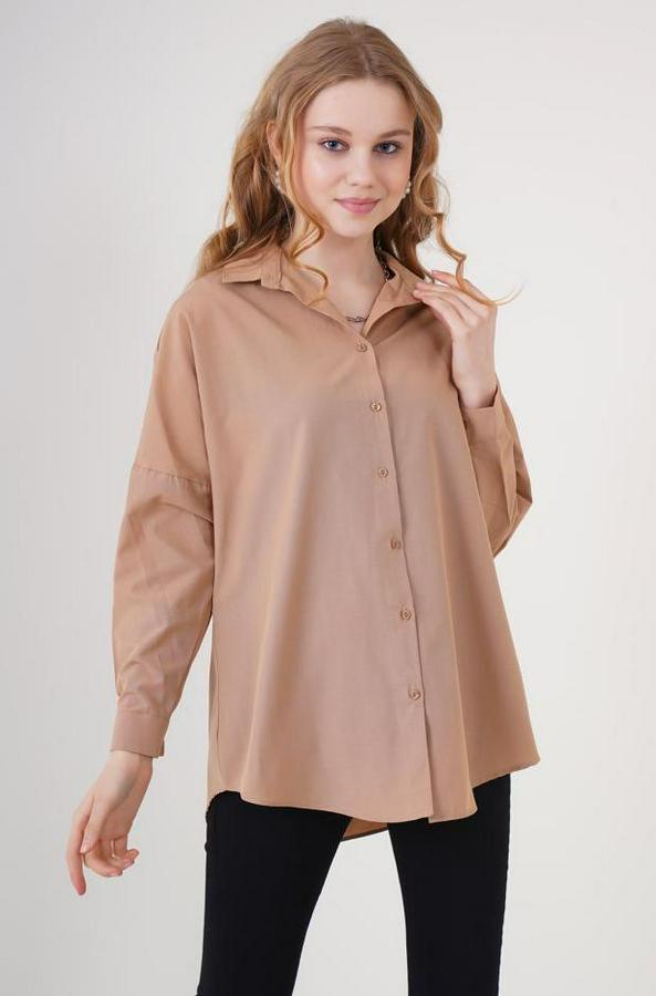 3900 Oversize Uzun Basic Gömlek - Camel