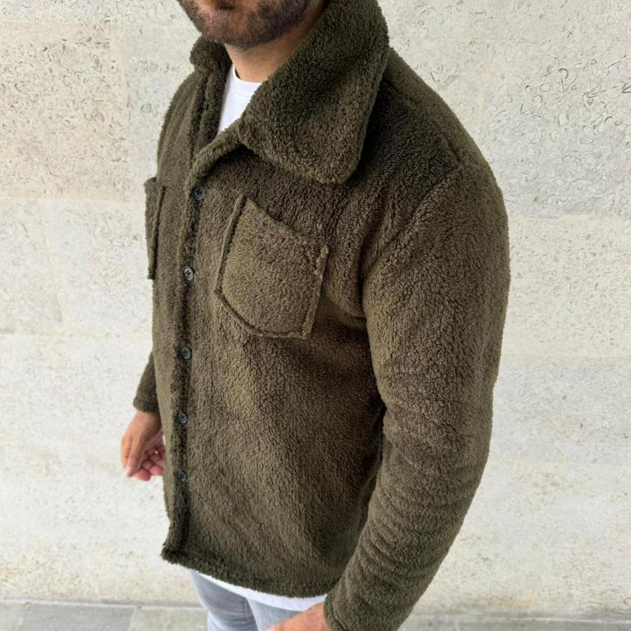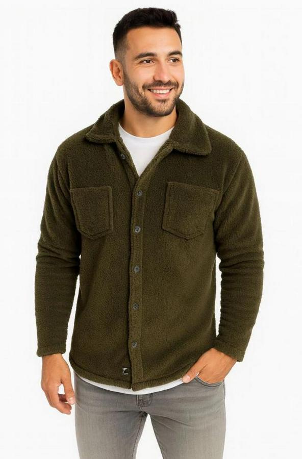 Erkek Pelüş Polar Hırka Gömlek – Yakalı, İlik Düğmeli, Göğüs Cepli, Yumuşak Dokulu Kışlık Regular Fit Rahat Günlük Model - Haki