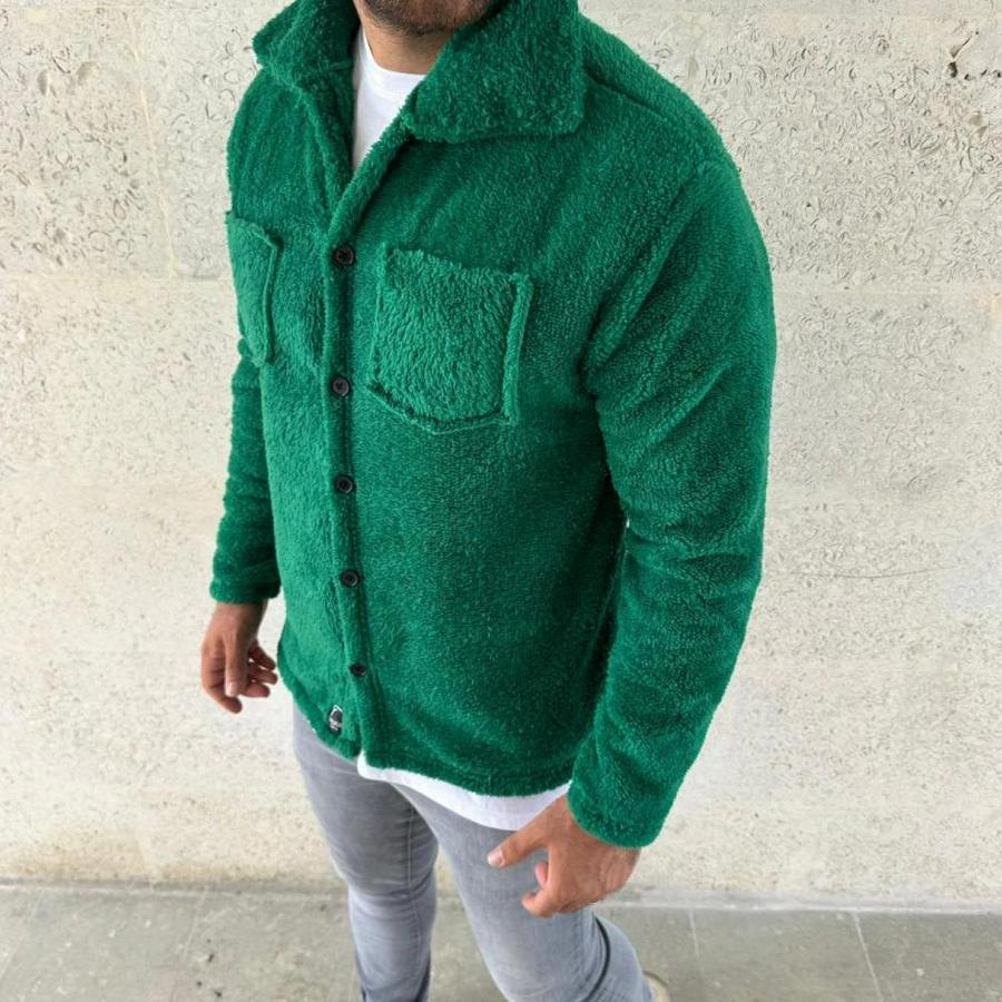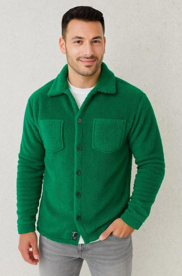 Erkek Pelüş Polar Hırka Gömlek – Yakalı, İlik Düğmeli, Göğüs Cepli, Yumuşak Dokulu Kışlık Regular Fit Rahat Günlük Model - Çimen Yeşili