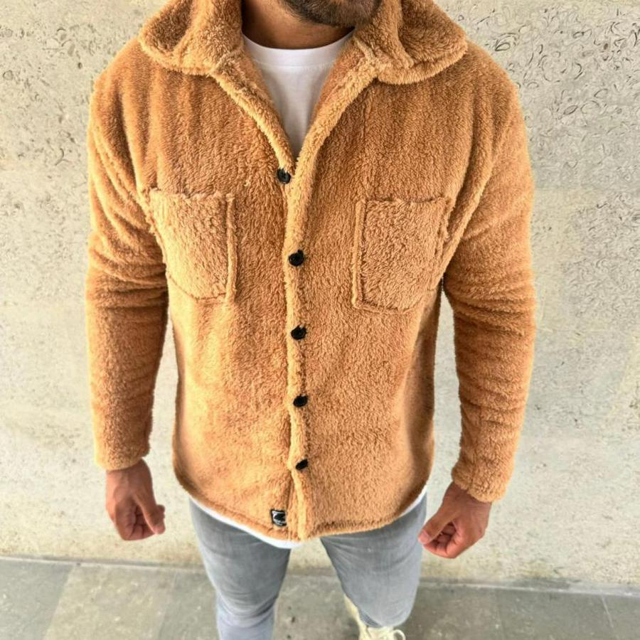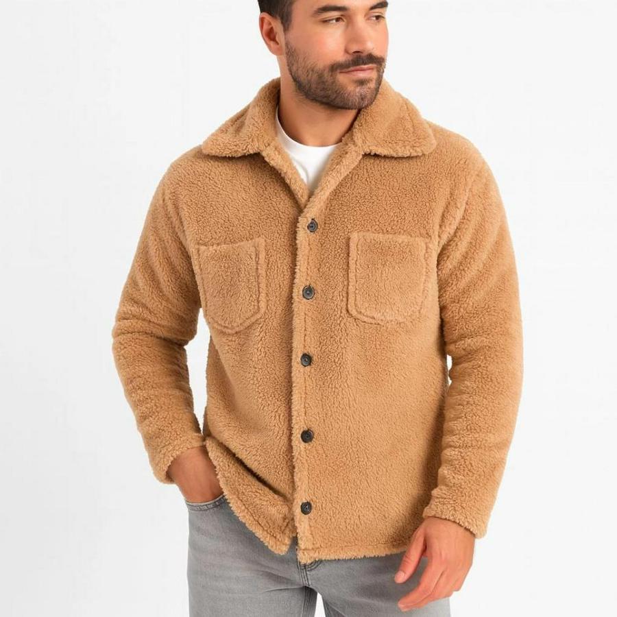 Erkek Pelüş Polar Hırka Gömlek – Yakalı, İlik Düğmeli, Göğüs Cepli, Yumuşak Dokulu Kışlık Regular Fit Rahat Günlük Model - Açık Kahve