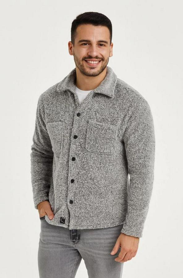 Erkek Pelüş Polar Hırka Gömlek – Yakalı, İlik Düğmeli, Göğüs Cepli, Yumuşak Dokulu Kışlık Regular Fit Rahat Günlük Model - Gri