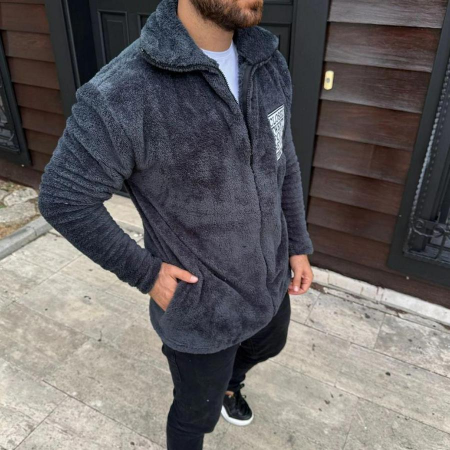 Erkek Polar Fermuarlı Sweatshirt – Kapüşonsuz, Cepli, Yumuşak Dokulu, Oversize Rahat Kalıp, Kışlık Sıcak Tutan Fermuarlı Üst - Füme