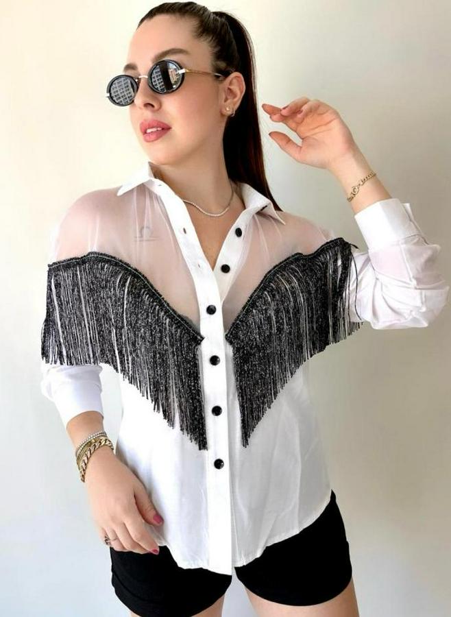 Kadın Püskül Detay Poplin Gömlek Bluz Fırsat Ürün
