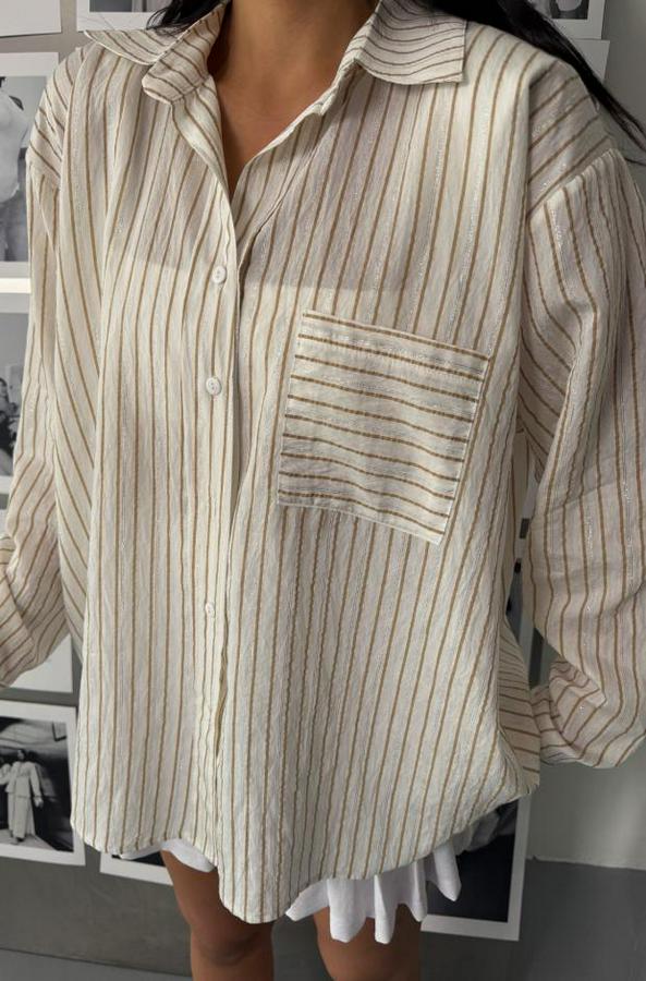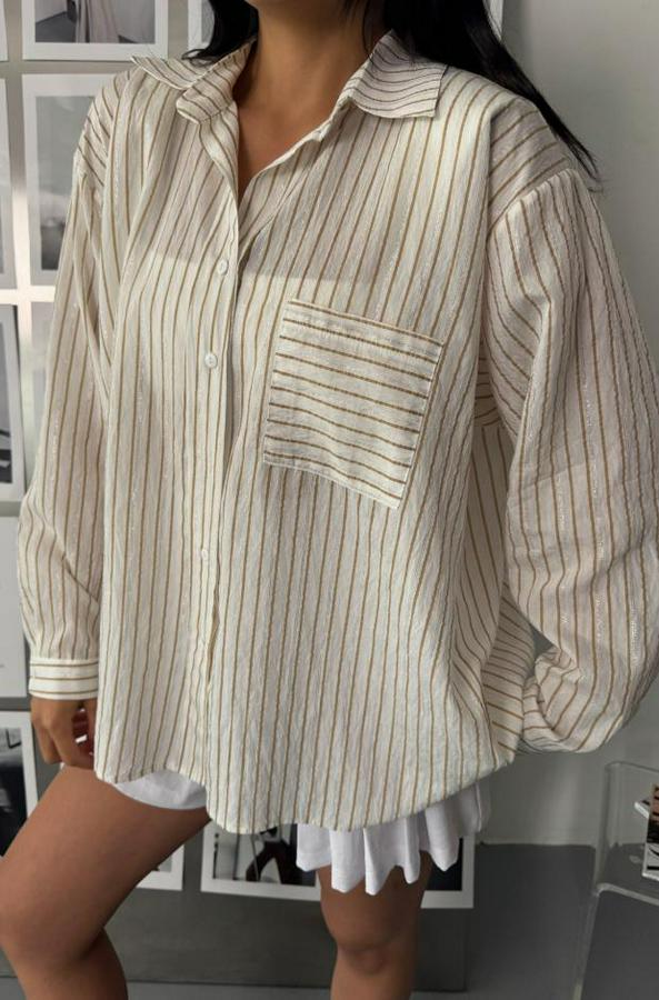 SİMLİ ÇİZGİLİ VUAL GÖMLEK - Bej