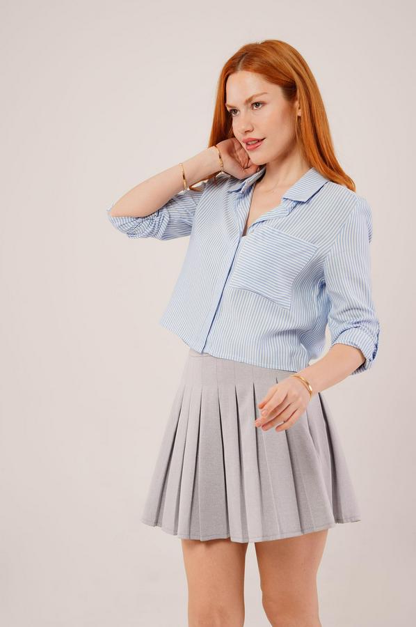 AnasayfaTüm ÜrünlerÜst GiyimGömlekTek Cep Çizgili Mavi Kısa Gömlek