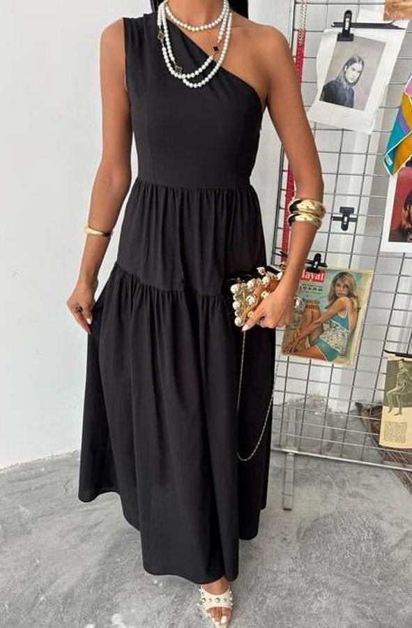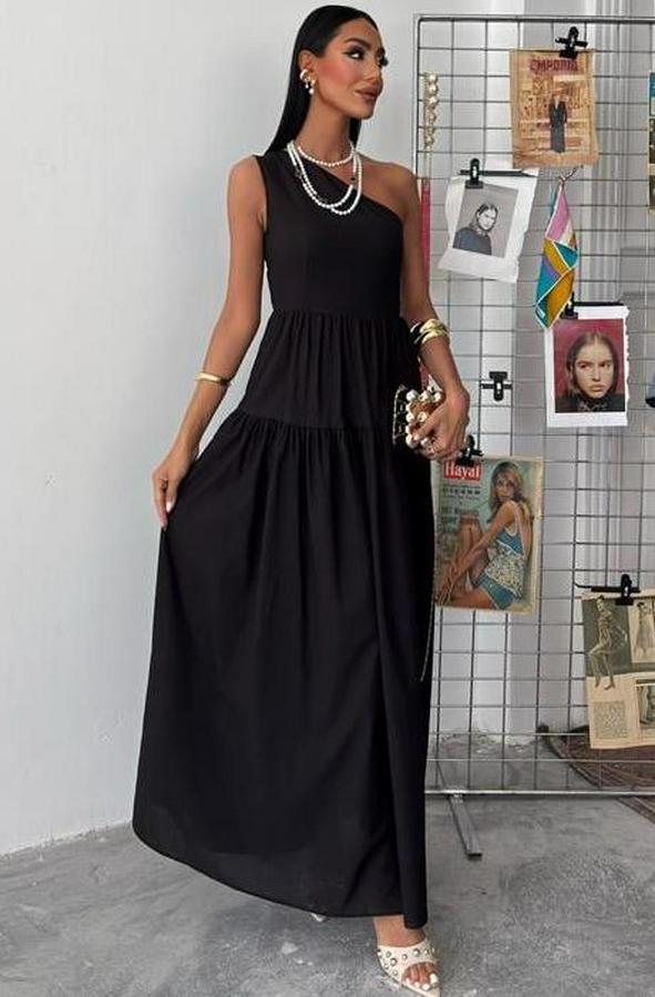 AnasayfaTüm ÜrünlerElbiseTek Omuzlu Pile Detay Maxi Elbise 2895