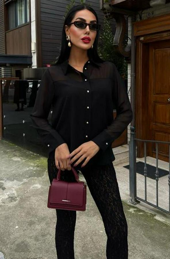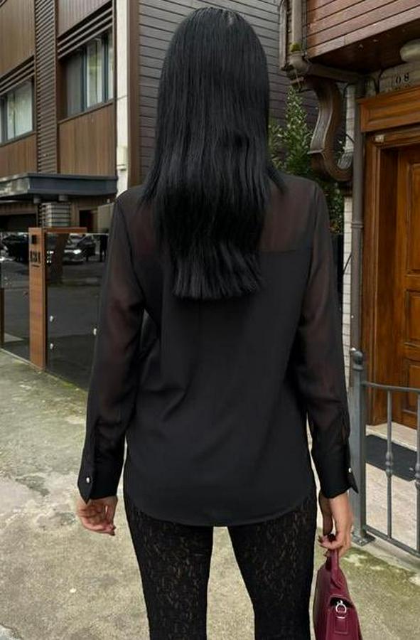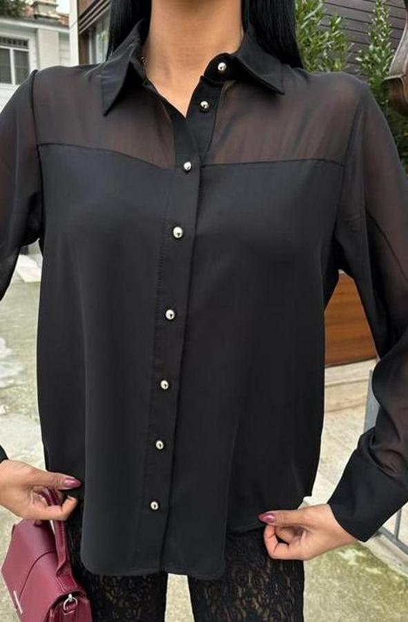 AnasayfaTüm ÜrünlerÜst GiyimGömlekTransparan Detaylı Dökümlü Gömlek 3427