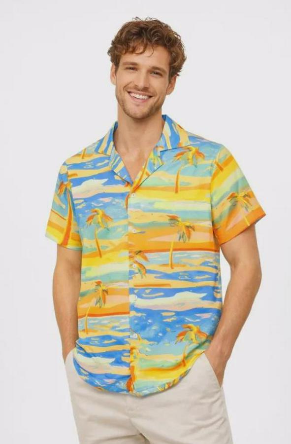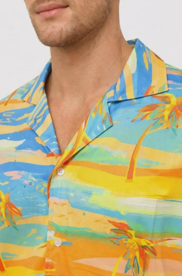 AnasayfaTüm ÜrünlerÜst GiyimGömlekTropikal Palmiye Desenli Kısa Kol Gömlek Yazlık Beach Tarz Rahat Kalıp