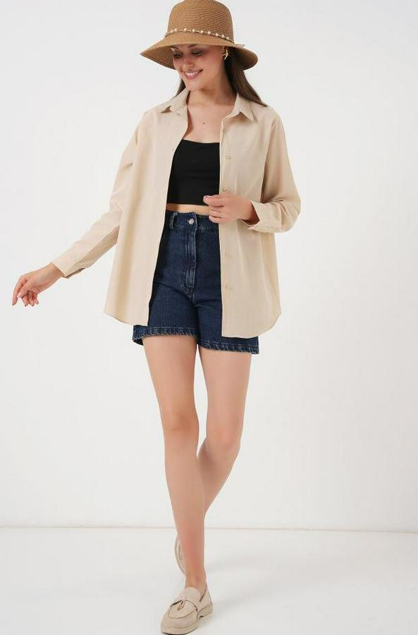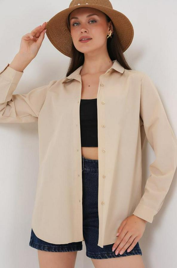 Uzun Kol Basic Gömlek 20279 - Bej