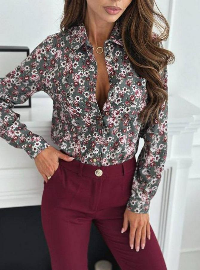 AnasayfaTüm ÜrünlerÜst GiyimGömlekUzun Kol Cep Detay Çiçek Baskılı Mosskrep Kumaş Gömlek
