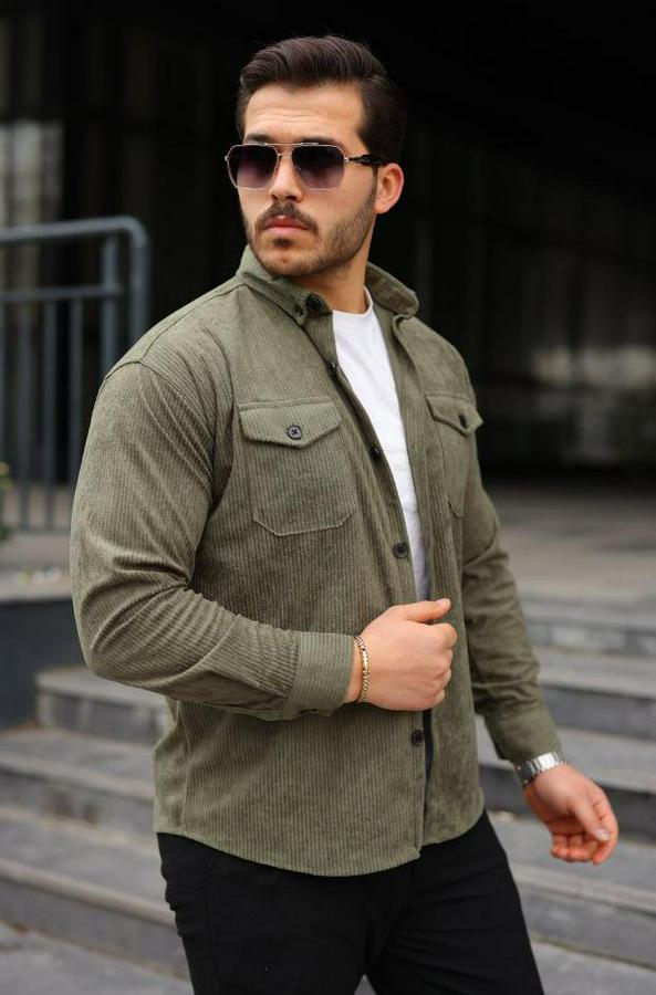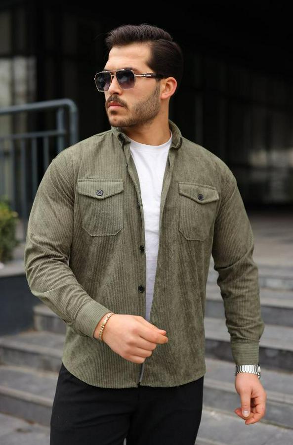 Erkek Uzun Kollu Cepli Kadife Gömlek
