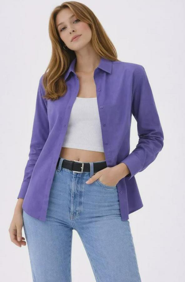 Uzun Kollu Gömlek Düğmeli Klasik Yaka Günlük Ve Ofis Şıklığına Uygun - Mor