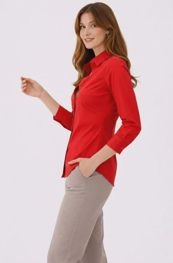 Uzun Kollu Gömlek Düğmeli Klasik Yaka Günlük Ve Ofis Şıklığına Uygun - Kırmızı