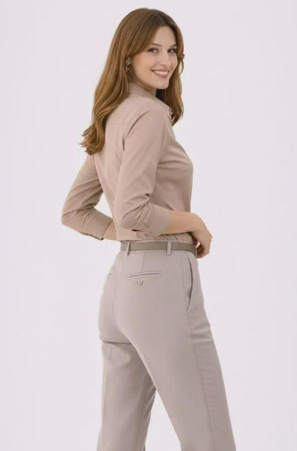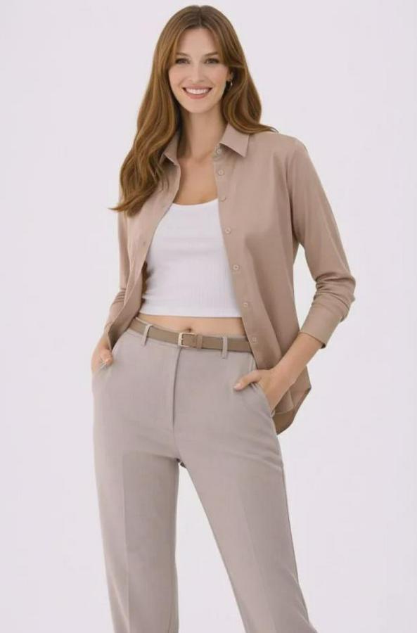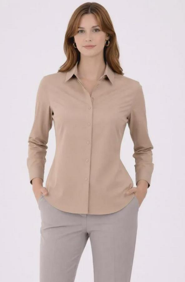 Uzun Kollu Gömlek Düğmeli Klasik Yaka Günlük Ve Ofis Şıklığına Uygun - Bej