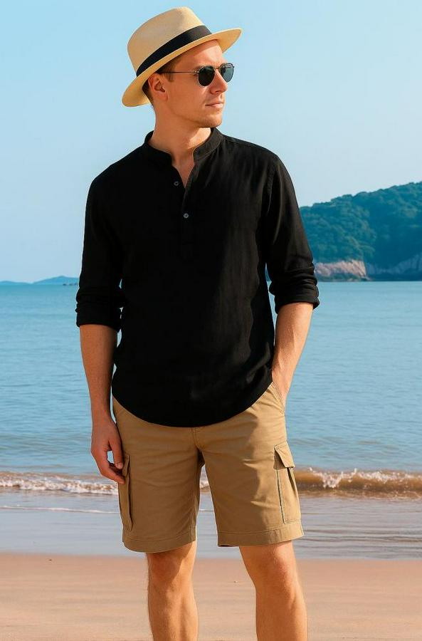 Erkek Uzun Kollu Hakim Yaka Düğmeli Erkek Müslim Gömlek