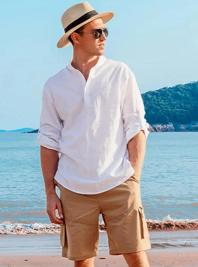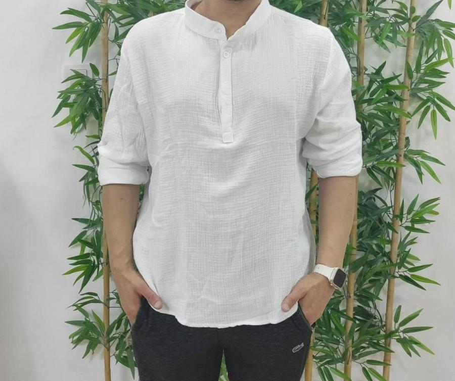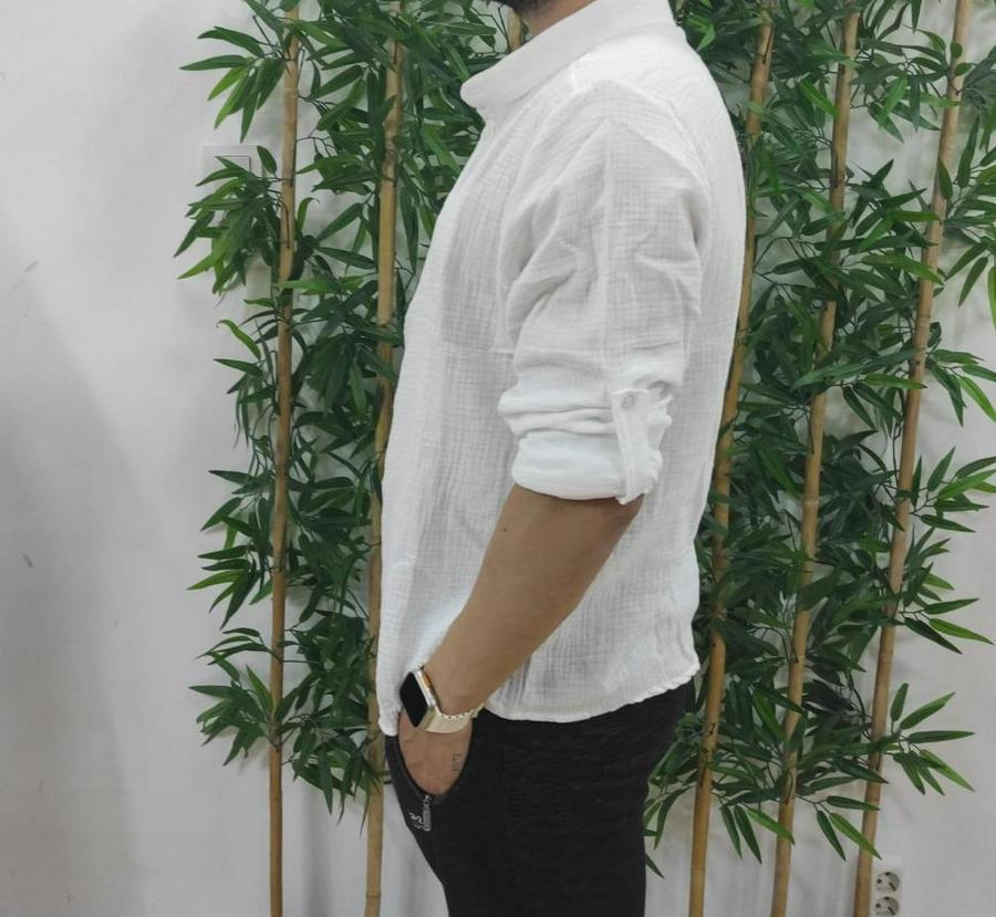 Erkek Uzun Kollu Hakim Yaka Düğmeli Erkek Müslim Gömlek