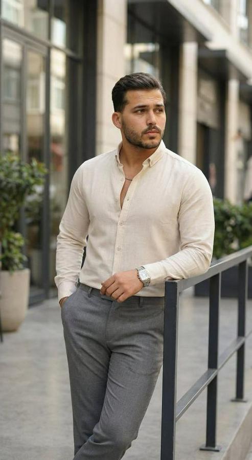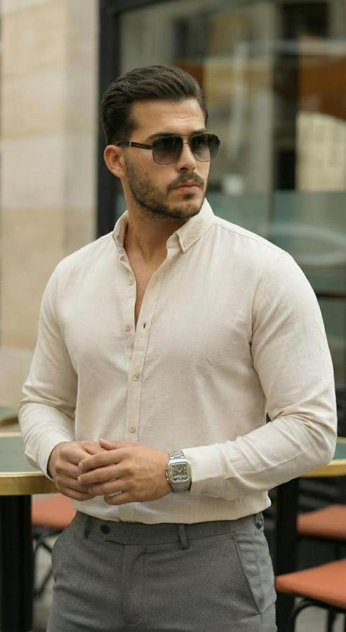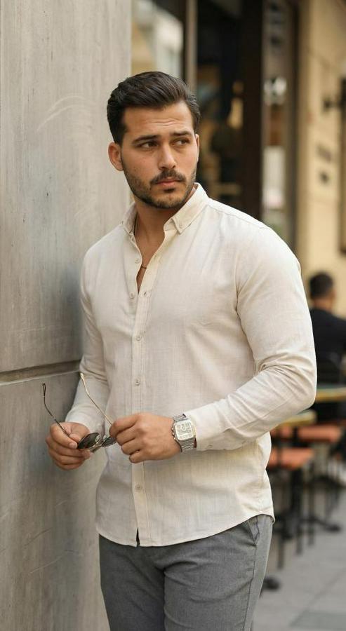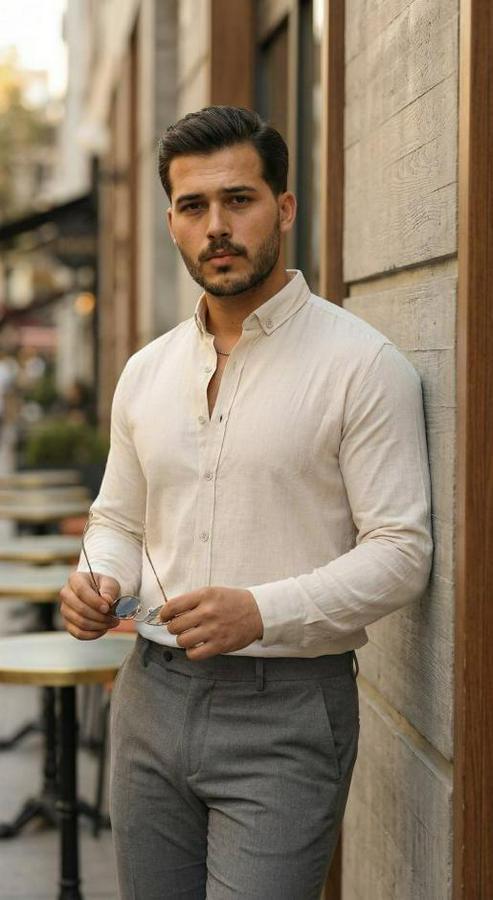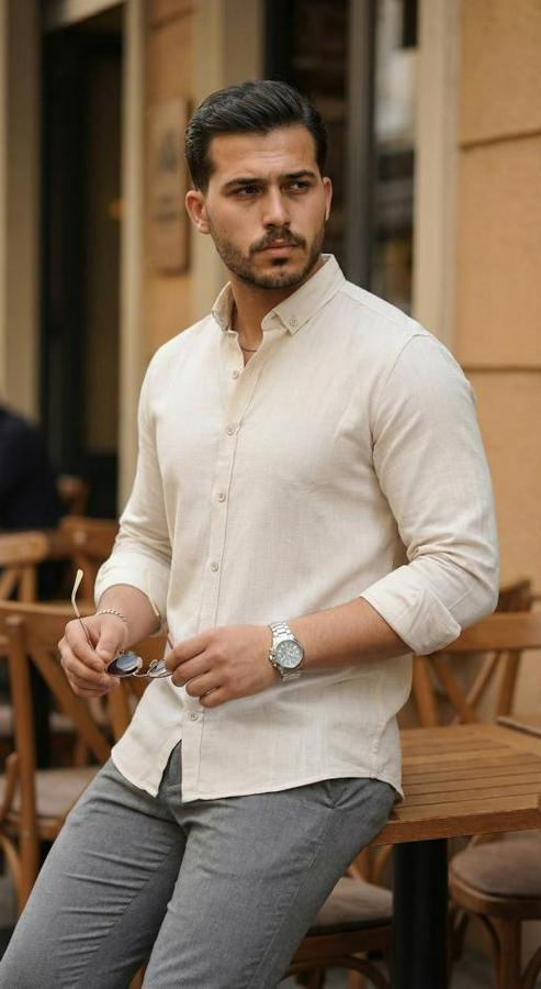 Erkek Uzun Kollu Rahat Keten Gömlek