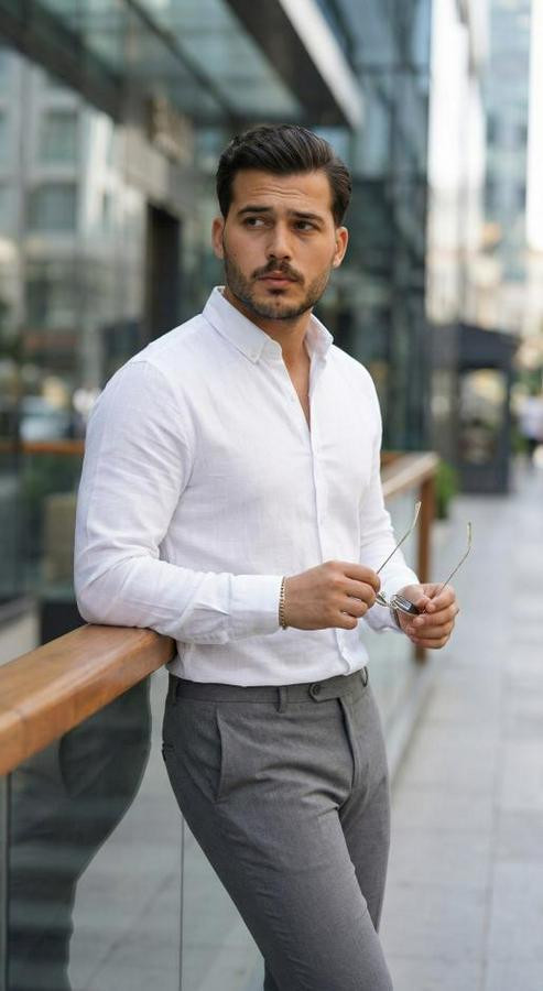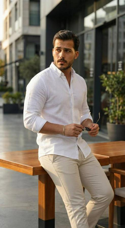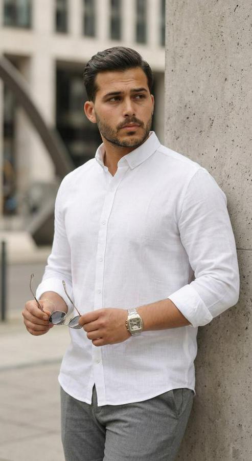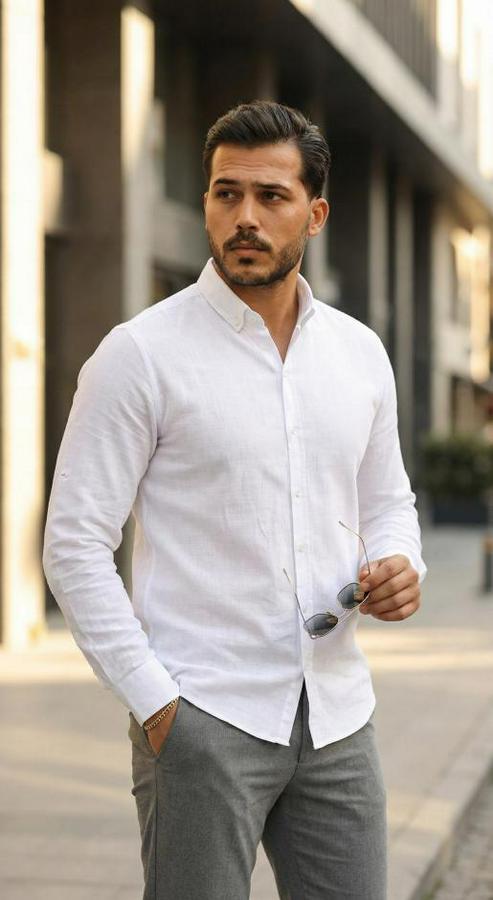Erkek Uzun Kollu Rahat Keten Gömlek