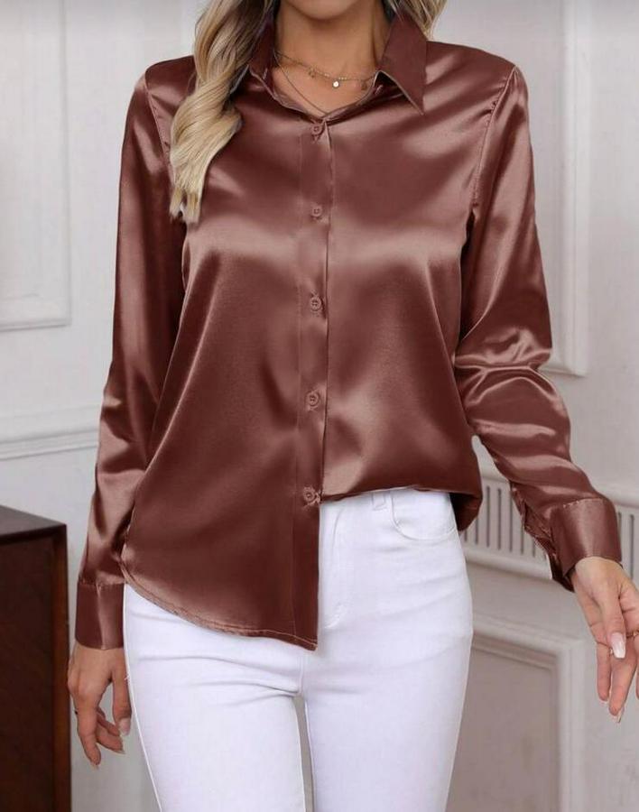 Kadın Uzun Kollu Saten Gömlek