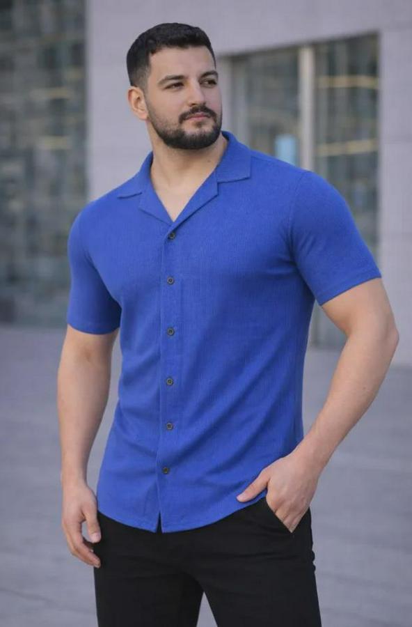 Waffle Dokuma Açık Yakalı Düğmeli Regular Kalıp 3’lü Gömlek Seti