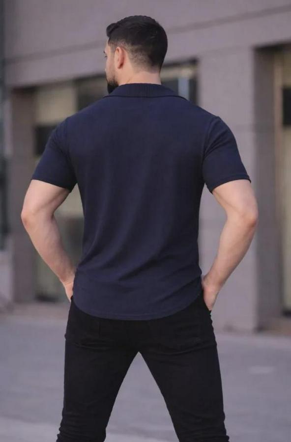 Erkek Waffle Kumaş Kısa Kollu Düğmeli Açık Yaka Regular Fit Gömlek - Lacivert