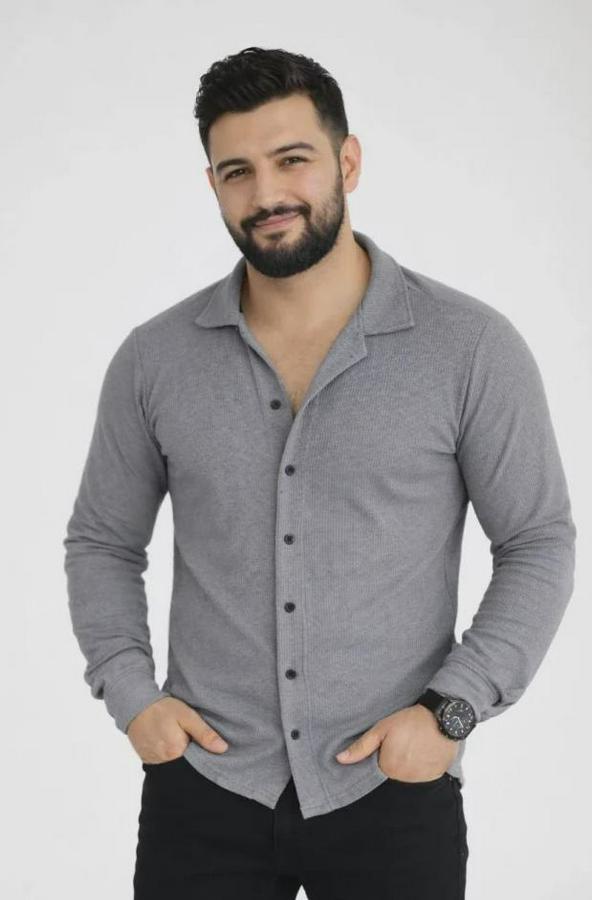 Waffle Kumaş Uzun Kollu Düğmeli Açık Yaka Regular Fit Gömlek
