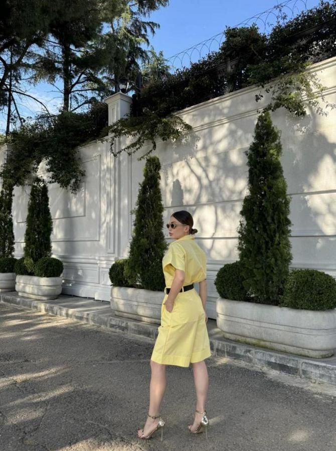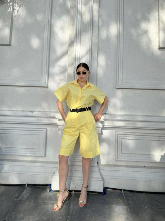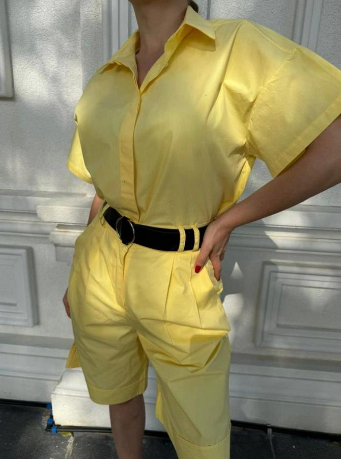 Yakalı Gömlek Kemerli Şortlu Takım - Sarı