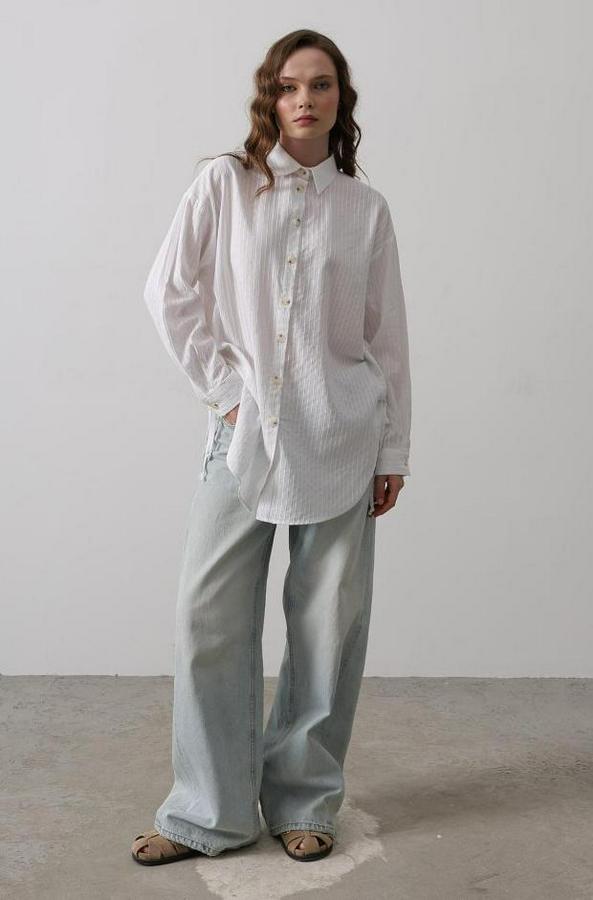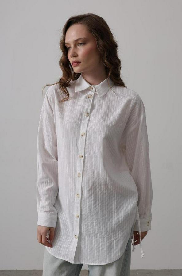 Yan Büzmeli Tunik Gömlek - Beyaz