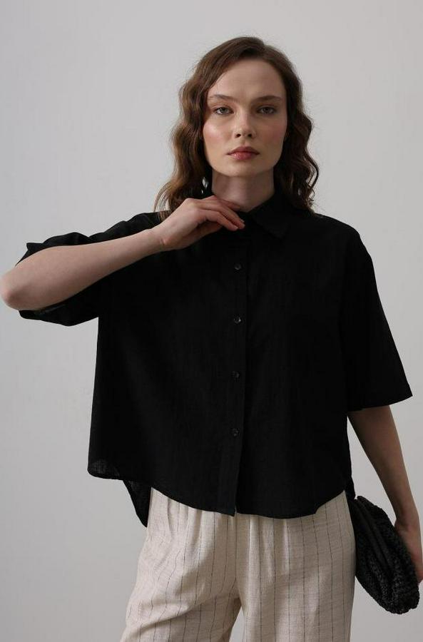 AnasayfaTüm ÜrünlerÜst GiyimGömlekYarım Balon Kol Çizgili Gömlek
