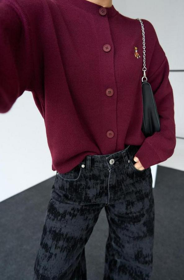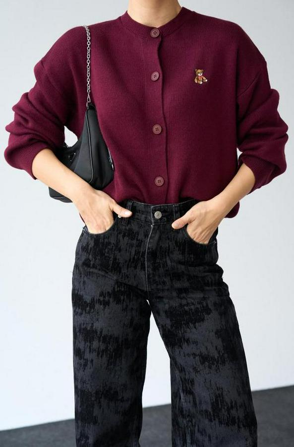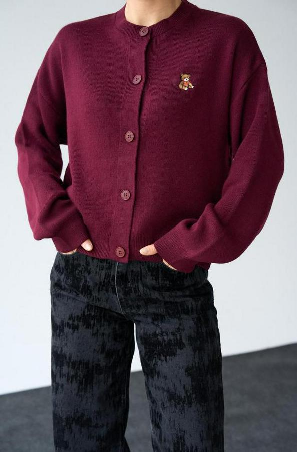 Ayıcıklı Hırka - Bordo