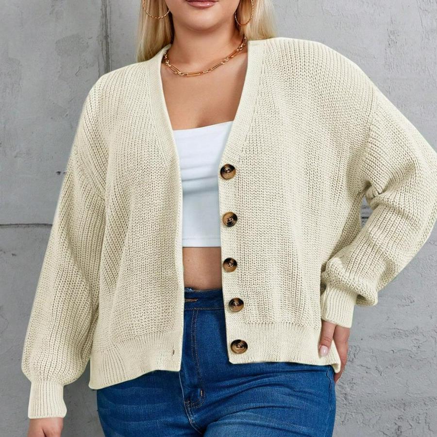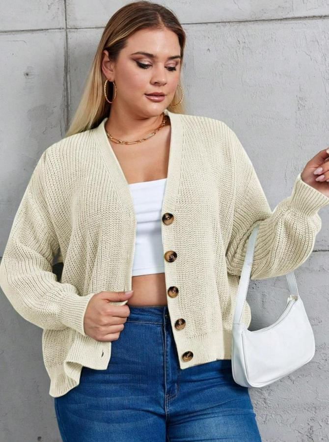 Kadın Beş Düğme Büyük Beden Triko Hırka