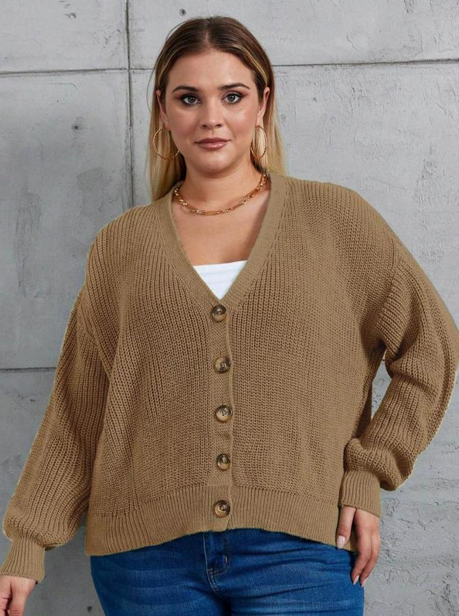 AnasayfaTüm ÜrünlerÜst GiyimKazak & HırkaHırkaBeş Düğme Büyük Beden Triko Hırka