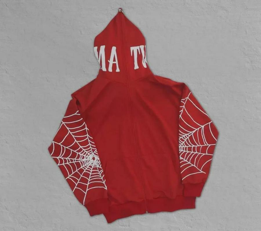 Erkek İki İplik Örümcek Baskılı Oversize Hırka - Kırmızı